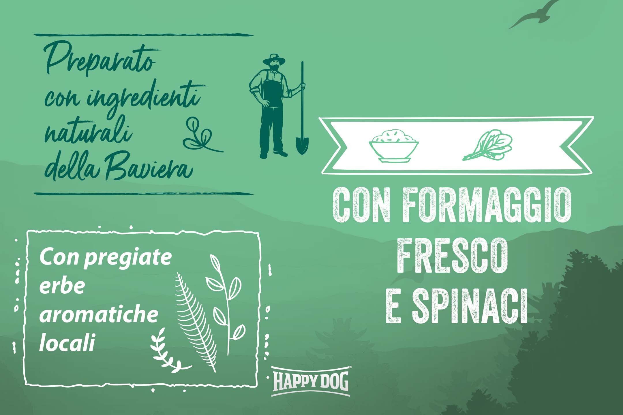 Miscela di crocchette equilibrata e facilmente digeribile con spinaci e formaggio fresco