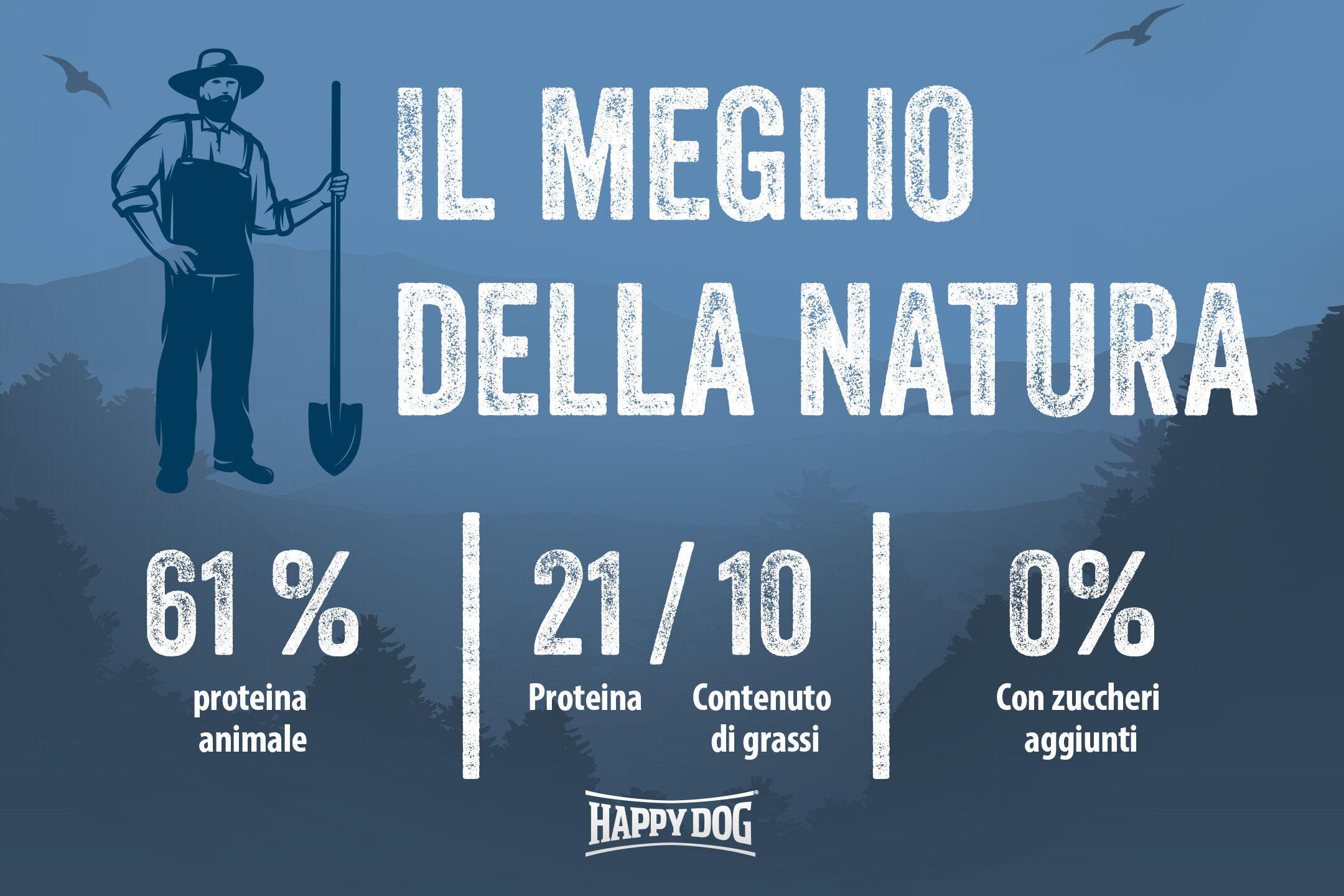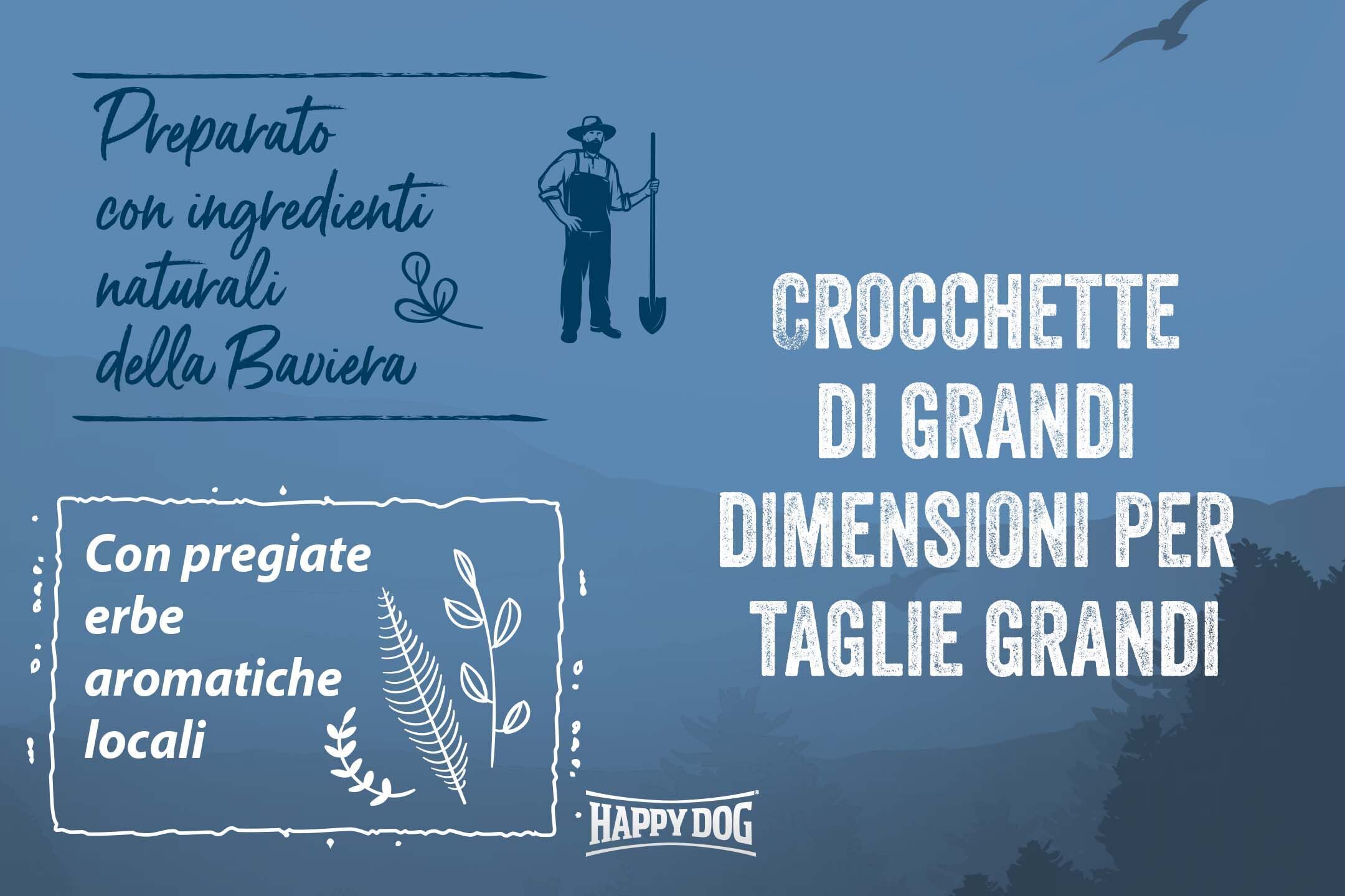 Con proteine animali di alta qualità e preziosi cereali integrali regionali, Happy Dog NaturCroq XXL fornisce al tuo cane tutti i nutrienti e le vitamine necessarie. Grazie ai suoi ingredienti naturali, è particolarmente idoneo ed è anche veramente facile da digerire. Le dimensioni delle crocchette di NaturCroq XXL sono state appositamente adeguate ai cani più grandi, per evitare un'ingestione troppo affrettata. Il contenuto di nutrienti è ottimale per il fabbisogno energetico delle razze canine di grandi dimensioni.