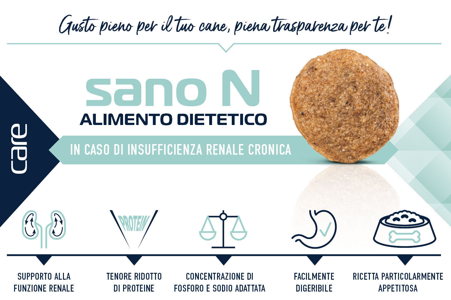 Happy Dog Sano N viene utilizzato come supporto alla funzione renale in caso di insufficienza renale cronica. Questa ricetta particolarmente gustosa e sana favorisce l'assunzione degli alimenti e assicura l'apporto di sostanze nutritive. Questo alimento dietetico per i reni si contraddistingue per un apporto specificamente bilanciato di fosforo e sodio. Grazie alla riduzione del contenuto proteico, la dieta renale per cani è particolarmente adatta anche in fase avanzata di insufficienza renale cronica.