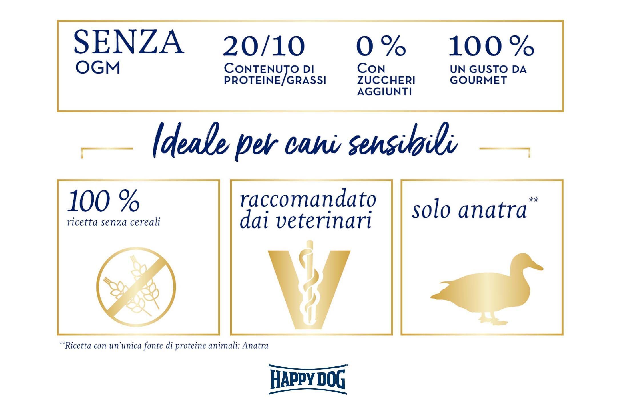 L'alimento completo super premium eccezionalmente gustoso Happy Dog France è ideale per tutti i buongustai adulti ed esigenti a partire da 11 kg, che cercano la varietà o che hanno i gusti un po’ difficili.