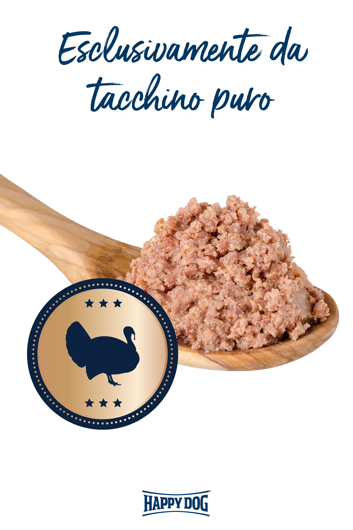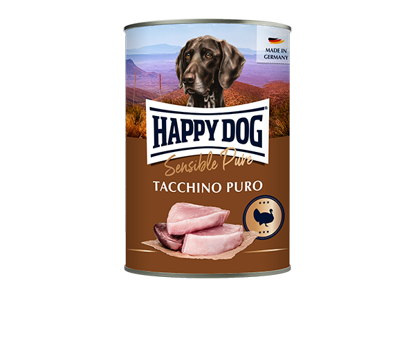 Nutri il tuo amico con alimenti umidi al tacchino puro oppure mescolati con Happy Dog FlockenMixer.