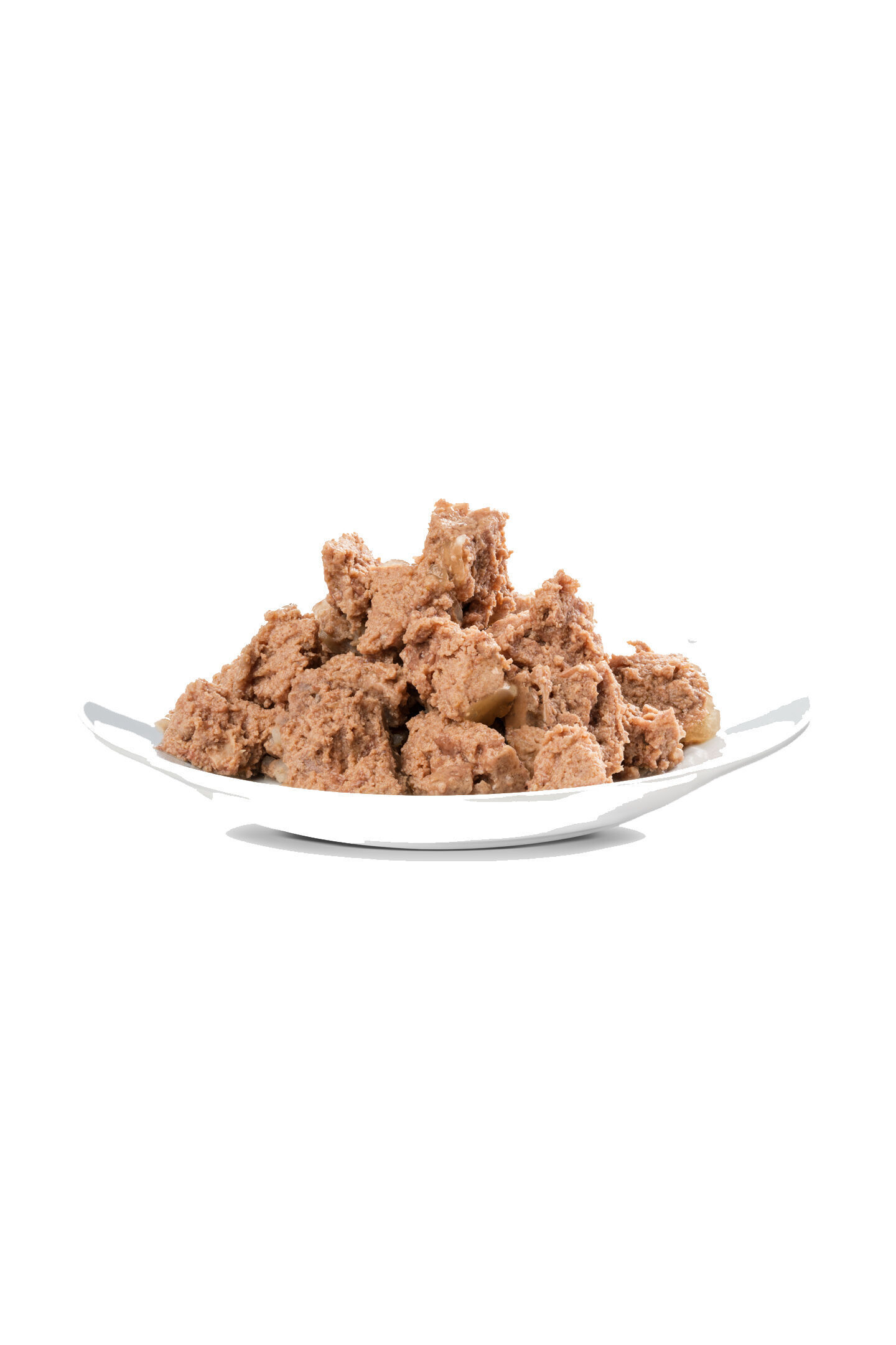 Carne e interiora di pollo (33 %) e maiale, patata dolce, uovo intero in polvere (2 %), olio di salmone (0,5 %), minerali, radice di cicoria (fonte di FOS), semi di cardo mariano